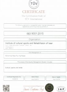 موسسه ایثاردر سایه الطاف الهی و همفکری و همکاری هیات مدیره موسسه وتلاش شبانه روزی همکاران درسراسر کشور با رعایت استانداردهای مدیریتی تولید و عرضه محصولات و ارائه خدماتِ با کیفیت به جامعه معظم ایثارگری،در عرصه تجارت داخلی و جهانی که داشتن گواهی نامه تأیید صلاحیت استانداردهای سریِ ایزو شرط اولیه در داد و ستد داخلی و بین المللی می باشد، در این راستا،طبق بررسی و ممیزی انجام شده، این موسسه موفق به اخذگواهینامهISO ۹۰۰۱):(۲۰۱۵ سیستم مدیریت کیفیت جهت فعالیت های خود در سه حوزه فرهنگی، ورزشی و توانبخشی از شرکت (internatuonail TUV) نائل گردید،که با اخذ این گواهینامه برگ زرین دیگری برای موسسه ایثار رقم خورد.